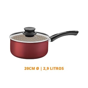 Panela Paris Alumínio Antiaderente Vermelho 20cm 2,9L PATV4 - Tramontina 20525720 - Corpo de alumínio com espessura que proporciona cozimento rápido e uniforme. - Revestimento interno e externo de antiaderente Starflon Max que não gruda, é fácil de limpar, mais durável e não é prejudicial à saúde, pois é livre de PFOA. - Tampa de vidro temperado, com saída de vapor e bordas de aço inox. - Cabo de baquelite antitérmico e pegador de nylon que oferecem segurança durante o manuseio. - Podem ir à máquina de lavar louças facilitando seu dia a dia. Para preparar suas refeições do dia a dia, é indispensável que você conte com um item que lhe garanta praticidade e versatilidade, como a panela Tramontina Paris em alumínio com revestimento interno e externo antiaderente em Starflon Max vermelho. Produzida em alumínio com revestimento interno e externo antiaderente em Starflon Max, ela garante o cozimento rápido e uniforme dos alimentos, evita que eles grudem em sua superfície e proporciona uma limpeza muito mais fácil. Ela possui tampa de vidro temperado com saída de vapor e borda de aço inox, que facilita a visualização dos alimentos e facilita seu preparo. Seu cabo é em baquelite antitérmico e o pegador da sua tampa é em nylon, dois materiais antitérmicos que proporcionam um manuseio muito mais seguro e confortável, pois não esquentam. Uma panela que pode ser levada à máquina de lavar louças e que vai otimizar sua rotina na cozinha : 90 dias para vícios ou defeitos de fabricação. Mais informações: - Cor: Vermelho - Linha: Paris - Revestimento: Antiaderente Starflon Max - Fogão: Gás, Elétrico, Vitrocerâmico - resistência elétrica - Máquina de lavar: Sim Marca: Não Informado