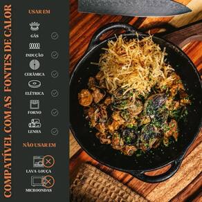 Modelo: Panela Parmegiana 28x7cm Material: Ferro fundido Medidas: 28 × 7 cm (Diâmetro × Altura) Capacidade: 3 L Peso: 3,1 kg Diferenciais: Alça de ferro resistente
