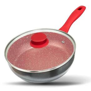A panela possui revestimento interno Redstone Antiaderente, que promove mais eficiência e facilidade durante o cozimento. Os alimentos não grudam, devido as 6 camadas de proteção em estrutura de alumínio com fundo triplo de 4,5mm. A tampa de vidro traz saída de vapor que combina beleza e segurança para você fazer de tudo, inclusive sem se queimar pois o cabo em baquelite emborrachado é super resistente a altas temperaturas. NA