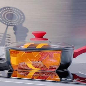 Cozimento Uniforme: O fundo com 4,5mm de espessura distribui o calor de forma uniforme e o mantém por mais tempo, garantindo um cozimento mais eficiente e saboroso.