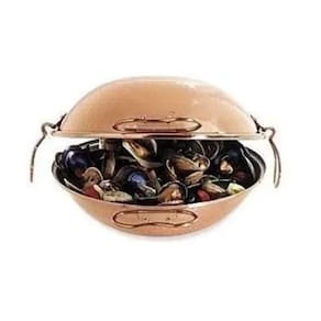 Para Preparar Bacalhau e Frutos do Marca em Geral, feita em cobre martelada e estanhada em seu interior pronto para uso, com alças especiais em bronze, ricamente trabalhada. Um Luxo em Sua Cozinha.