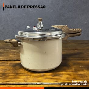 Distribuído por feheros shop Panela antiaderente 4,2 litros revestimento cerâmico indução premium Atenção A panela com revestimento cerâmico possui propriedades antiaderentes que ajudam a evitar que os alimentos grudem. Porém, não é 100% antiaderente e pode exigir pequena quantidade de óleo ou para melhor desempenho. - produto certificado pelo inmetro nível a . - evite que a chama do fogão atinja as laterais da panela. - não deixe o produto superaquecer vazio. - leia atentamente a descrição e siga o passo a passo que o fabricante recomenda. Informações do produto A panela 4,2 litros é ideal para famílias menores ou para quem deseja preparar receitas em quantidades moderadas. Compatível com fogões a gás, elétricos, vitrocerâmicos e por indução, ela garante versatilidade para qualquer cozinha. Sua estrutura em alumínio de alta qualidade, combinada ao revestimento cerâmico antiaderente em múltiplas camadas, proporciona resistência e longa durabilidade, evitando que os alimentos grudem e permitindo o uso de menos óleo. Especificações técnicas - compatível com fogões a gás, elétricos, vitrocerâmicos e por indução, oferecendo versatilidade para diferentes cozinhas. - revestimento cerâmico antiaderente livre de pfoa, que preserva o sabor dos alimentos e permite cozinhar com menos óleo. - cabo de baquelite com revestimento soft touch macio, que não esquenta e garante conforto e segurança. - fundo triplo de indução que aquece rapidamente e distribui o calor de forma uniforme, economizando tempo e energia no preparo das refeições. - estrutura em alumínio de alta resistência, com duas camadas de revestimento cerâmico e uma camada especial resistente a altas temperaturas, garantindo durabilidade e desempenho superior. - sistema de segurança completo com regulador , duas válvulas de segurança adicionais, válvula flutuante, anel de vedação e tampa à prova de bloqueio. Ficha técnica do produto - altura com tampa: 18,5 cm - altura sem tampa: 14,5 cm - capacidade: 4,2 l - compatibilidade: fogões de indução, a gás, elétricos e vitrocerâmicos - comprimento total: 41,5 cm - certificação: inmetro nível a - diâmetro: 20 cm - dispositivos de segurança: 6 sistemas de bloqueio - espessura: 4 mm - material do cabo: baquelite soft touch - material do corpo: alumínio de alta qualidade - peso: 1,450 kg - revestimento: cerâmico Antes do primeiro uso - lave a panela com esponja macia e detergente líquido. - seque bem com pano limpo. - coloque uma fina camada de óleo vegetal na borda do corpo e no anel de vedação. - coloque água até a metade da panela, feche a tampa e aqueça até que o regulador libere o vapor. - leve ao fogo baixo por 2 minutos. - deixe esfriar, lave novamente e seque antes de usar. Após o uso - aguarde a panela esfriar antes de lavar. - lave manualmente com água morna, sabão neutro e esponja macia. - para remover resíduos, deixe de molho em água por alguns minutos. - não utilize esponjas ou produtos abrasivos. - nunca segure o regulador para liberar a pressão e jamais force a abertura da tampa, pois ela só se abrirá quando a pressão - estiver totalmente liberada. - não é indicado o uso em lava-louças, para preservar o revestimento cerâmico e garantir maior durabilidade. Item incluso no pacote - 01 panela antiaderente revestimento cerâmico 4,2 litros Todas as fotos são reais dos produtos. Qualquer dúvida, estamos à disposição. Dúvidas frequentes 01- o produto é novo Possui R: sim, o produto é novo e possui de 3 meses conforme as normas do fabricante. 02- é compatível com fogão de indução R: sim, ele possui fundo especial que permite o uso em fogões de indução, além de fogões a gás, elétricos e vitrocerâmicos.