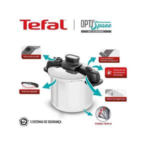Panela OptiSpace 7L Inox Com Fundo Triplo E Cesto De Vapor Tefal A panela OptiSpace 7 litros da Tefal é feita em inox e conta com fundo triplo. Ela é compacta e chega a ser 40% menor que outras panelas da mesma litragem. A linha Tefal OptiSpace facilita o armazenamento e otimiza o espaço na sua cozinha. Com toda segurança que você precisa em uma panela , a Tefal OptiSpace possui 5 sistemas de segurança e só pega pressão se estiver devidamente fechada. Além disso, possui dois níveis : um nível para alimentos mais pesados, como grãos e carnes, e outro para alimentos mais leves. Acompanha também uma cesta de vapor para alimentos delicados, retendo seus nutrientes e vitaminas. Compatível com indução e demais fontes de calor graças ao fundo triplo, que distribui o calor uniformemente, resultando em um cozimento mais rápido e homogêneo. Atributos do Produto: Referência: 000000007114000613 Código: 7114000613 Código de Barras: 3045384363256 Cor: Cinza Inox : 24 Meses fabricante Marca: Tefal Modelo: OptiSpace Material: Inox Capacidade: 7 litros Detalhes e Especificações Técnicas: Fundo triplo Com 2 níveis Com 5 sistemas de segurança Compatível com todo tipo de fogão Acompanha cesto para cozimento a vapor Até 40% menor que panelas da mesma litragem Dimensões do Produto: Altura: 29,4 cm Largura: 29,1 cm Comprimento: 36,1 cm Peso: 3,3 Kg Conteúdo da Embalagem: 01 Panela OptiSpace 7L Inox Com Fundo Triplo E Cesto De Vapor Tefal 01 Manual de instruções Importante Produtos de decoração não inclusos. Imagens meramente ilustrativas; As cores dos objetos podem sofrer alterações devido a luminosidade, configurações do monitor e até mesmo a percepção do usuário; Os dados divulgados são de responsabilidade do fabricante/fornecedor. Marca: Não Informado