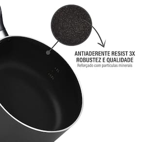 Linha Rochedo Robusta, com antiaderente Resist 3x que oferece maior robustez e qualidade. Reforçado com partículas minerais, dura mais. A Panela Rochedo Robusta Grafite 18cm irá surpreender sua família com sua durabilidade e resistência. Conheça todos os diferenciais dessa linha: