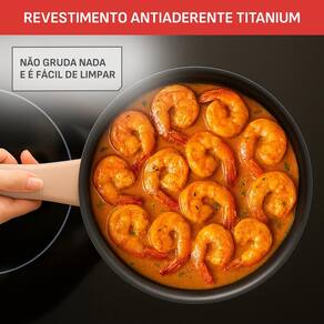 - Revestimento Titanium Reforçado: Não gruda. O revestimento antiaderente Titanium de alta durabilidade facilita tanto o preparo dos alimentos quanto a limpeza, garantindo muito mais praticidade no seu dia a dia.