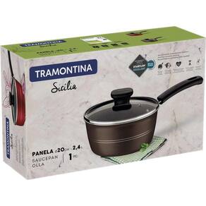 Características: Marca: Tramontina Linha: Sicília Cor: Avelã Material: Alumínio Material da Alça/Pegador: Baquelite Antitérmico Antiaderente: Sim Espessura: 3mm Capacidade: 2,4L Diâmetro: 20cm Fogões Compatíveis: A gás, elétrico e vitrocerâmico Compatível com Lava Louças: Sim Material da Tampa: Vidro