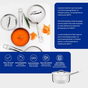 Seja para uso intenso ou pessoal, a Panela Tramontina em Aço Inox Fundo Triplo com Tampa Plana Detalhe Satinado 16 cm de diâmetro 1,4 L é perfeita para todos os tipos de preparos, podendo ser utilizada no fogão e no forno. Produzida com aço inox e fundo triplo (aço inox + alumínio + aço inox), os alimentos ficam prontos rapidamente, pois distribui o calor uniformemente, agilizando o processo de cozimento. A linha Professional da Tramontina é a escolha certa para quem gosta de preparar receitas cheias de sabor.