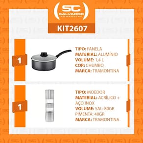A Panela Tramontina Turim, com sua espessura de 1,2mm, assegura um cozimento uniforme e rápido. Acompanha um Moedor de Sal e Pimenta Duplo, que permite ter dois temperos em um só utensílio, otimizando seu espaço na bancada. Fabricado em alumínio e com revestimento interno e externo em antiaderente Starflon T1, este kit oferece durabilidade e resistência para o uso contínuo. Sua tampa de vidro temperado e os cabos de baquelite garantem segurança e praticidade ao manusear. Não perca a chance de equipar sua cozinha com o melhor. Adquira agora o seu conjunto e desfrute de refeições deliciosas com mais facilidade!