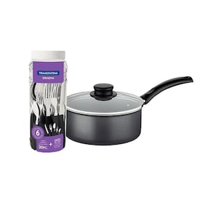 Panela Turim Alumínio Chumbo Antiaderente 1,4l Ptc + Faqueiro Ipanema Preto 30pc - Tramontina