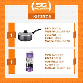 MUITO IMPORTANTE:CONFERIR PRODUTOS NO ATO DO RECEBIMENTO. NÃO ACEITAR PRODUTOS COM EMBALAGEM VIOLADA (AMASSADO, RASGADO, ABERTO, QUEBRADO, ETC), A RECUSA DEVE SER FEITA NO ATO Componentes do Kit:1 - Panela Turim Alumínio Antiaderente Chumbo 16cm 1,4L PTC3 - Tramontina 1 - Faqueiro Inox 30Pc Ipanema Preto - Tramontina Panela Turim Alumínio Chumbo Antiaderente 1,4L PTC + Faqueiro Ipanema Preto 30pc - Tramontina Descubra sua experiência gastronômica com o Kit de Panela e Faqueiro Tramontina, a escolha ideal para quem procura funcionalidade no dia a dia e um toque de requinte. Perfeito para quem está montando a casa, este conjunto transforma a cozinha, tornando cada refeição um evento especial. A panela é ideal para preparar pratos deliciosos sem complicação, enquanto o faqueiro complementa a mesa com estilo. A panela com revestimento antiaderente garante que os alimentos não grudem, um detalhe crucial para uma limpeza rápida e sem esforço. A panela Turim em alumínio com revestimento antiaderente permite um cozimento uniforme e sem grudar. O faqueiro Ipanema, com suas lâminas de aço inox e cabos de polipropileno, oferece durabilidade e conforto no manuseio. O kit é construído com materiais de alta qualidade, oferecendo resistência para uso contínuo e diário. O design moderno e a facilidade de limpeza de ambos os itens otimizam seu tempo na cozinha. Não perca a oportunidade de renovar sua casa com itens essenciais e elegantes. Adquira agora o Kit Tramontina e desfrute de refeições preparadas e servidas com perfeição! Especificações Panela:- Capacidade: 1,4L;- Alumínio com 1,2mm de espessura;- Revestimento anti-aderente;- Altura com tampa e cabo: 13,9cm;- Altura somente com tampa: 14,4cm;- Altura interna: 6,7cm;- Diâmetro: 16cm;- Comprimento total: 31,9cm;- Garantia de 90 dias para vícios ou defeitos de fabricação;- Não utilizar em temperaturas superiores à 260C. Especificações Faqueiro:- Antes da primeira utilização, lave bem as peças e seque-as.- Produto cortants e perfurantes, tenha cuidado e mantenha sempre fora de alcance das crianças.- Para maior durabilidade dos produtos, recomenda-se secar bem antes de gaurar, mesmo após lavagem em máquinas.- Para descarte dos produtos e embalagem, sega as orientações de reciclagem vigente. Conteudo:6 Faca Lâmina 11,2cm - medida 21cm6 Garfos de mesa. - medida 19cm6 Colheres de mesa. - medida 19cm6 Garfos para sobremesa. - medida 14cm6 Colheres para chá. - medida 14cm Cor: Cinza | É kit de fábrica: Não | Quantidade de Peças: 31 | Materiais: Alumínio | Adequado para fogão de indução: Não | Com revestimento antiaderente: Sim