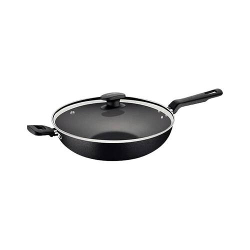 Panela Wok 28CM 3,3L Loreto Grafite Antiaderente Tramontina Preparar suas receitas favoritas ficou muito mais prático com a wok Tramontina Loreto em alumínio com revestimento interno antiaderente starflon max com tampa de vidro 28 cm de diâmetro 3,3 L. Produzida em alumínio com revestimento interno e externo de antiaderente Starflon Max, possui maior poder de antiaderência, maior resistência à abrasão e maior durabilidade. Possui cabo e alça em baquelite antitérmico e pegador em nylon, que proporcionam um manuseio confortável e seguro. A tampa é produzida em vidro temperado com saída de vapor e borda de aço inox. A Wok Tramontina garante rapidez no preparo graças ao seu formato e seu revestimento proporciona um cozimento muito mais saudável, pois exige baixa utilização de gordura, preservando ainda mais as propriedades nutritivas dos alimentos, ressaltando o sabor de seus pratos. Marca: Não Informado Ean: 7892683601543