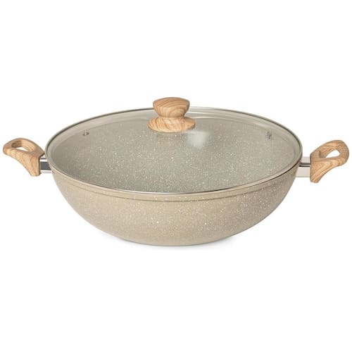 Cerâmica antiaderente de alta qualidade: a wok marble cerâmic é produzida em alumínio com revestimento de 2 camadas de nanoparticulas de biocerâmica, proporcionando um cozimento rápido e uniforme do seu alimento, além de ser super fácil e rápido de lavar.