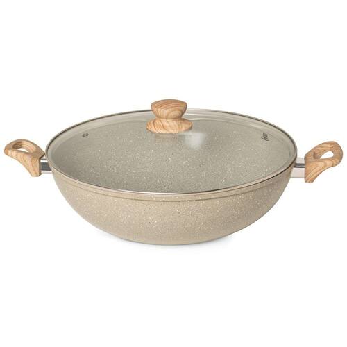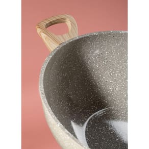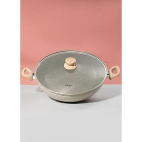 Panela Wok Indução Com Tampa 34cm Cerâmica Marble Edition Cinza Dust Oster