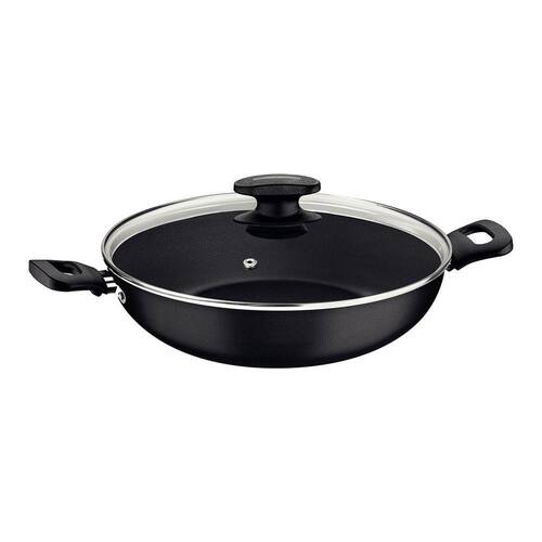 Panela Wok Loreto Em Aluminio Com Revestimento Interno E Externo Em Antiaderente Starflon Max Tramontina Loreto em alumínio com revestimento interno e externo em antiaderente Starflon Max grafite 28 centímetros de diâmetro 3,3 litros. Ideal para quem gosta de preparos prático e ágeis, ela tem corpo com 1,8 milímetros de espessura produzido em alumínio. Seu revestimento é em Starflon Max, antiaderente que evita que os alimentos grudem na superfície e a torna muito mais fácil de limpar. A wok ainda vem com tampa de vidro temperado com borda de aço inox e tem alças de baquelite antitérmico e pegador em nylon Para facilitar suas tarefas na cozinha, ela pode ser levada à máquina de lavar louças. Corpo de alumínio com espessura de 1,8 mm que proporciona cozimento rápido e uniforme. Revestimento interno e externo de antiaderente Starflon Max que não gruda, é fácil de limpar, mais durável e não é prejudicial à saúde, pois é livre de PFOA. Tampa de vidro temperado com borda de aço inox. Alças de baquelite antitérmico e pegador de nylon que oferecem segurança durante o manuseio. Pode ir à máquina de lavar louças facilitando seu dia a dia.