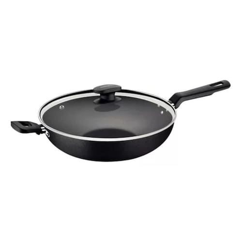 Detalhes do produto A wok Tramontina Loreto em alumínio em revestimento interno e externo em antiaderente Starflon Max vermelho 28 centímetros de diâmetro 3,3 litros é a escolha ideal para garantir praticidade e estilo para sua cozinha. Ideal para utilização no preparo de suas receitas diárias, ela possui corpo de alumínio com 1,8 milímetros de espessura, o que garante um cozimento rápido e uniforme dos alimentos. Seu revestimento interno e externo é em Starflon Max, antiaderente que não gruda efacilitando a limpeza após o uso. Ela vem com uma tampa vidro temperado com borda de aço inox e saída de vapor, e para sua segurança e conforto, seu cabo e alça são em baquelite antitérmico. A Wok Tramontina Loreto ainda é compatível com fogões a gás, elétrico e vitrocerâmico - resitência elétrica, sendo adequada para máquinas de lavar louças, tornando a limpeza uma tarefa simples e rápida