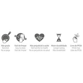 - A capacidade volumétrica máxima para cozimento é de 3/4 da capacidade total da peça. - Posicione os cabos dos utensílios voltados ao centro do fogão. - Em fogões com grade, centralize a peça e alinhe o cabo com a grade. - Utensílios quentes devem estar fora do alcance das crianças. - Este produto não pode sofrer modificações. - Antes do primeiro uso, lave com esponja macia, sabão neutro ou detergente líquido. - Depois de secar, unte a área interna com óleo ou gordura e leve ao fogo por um ou dois minutos. - Deixe esfriar e lave novamente. - Seu utensílio Starflon está pronto para uso com ou sem gordura, sempre em fogo baixo ou médio (nunca superior a 350C). - Para mexer os alimentos use somente utensílios de silicone, nylon ou madeira. - Com o uso, os cabos, alças e pegadores podem afrouxar devido à dilatação normal dos materiais. - Reaperte apenas o suficiente, sem forçar. - Evite a imersão do utensílio quente em água fria. - Nunca utilize produtos abrasivos na lavagem. - Se deixar queimar alimentos, umedeça a área e reserve até que possa remover os resíduos grudados com esponja e sabão. - Para descarte dos produtos e embalagens siga as orientações de reciclagem vigentes.