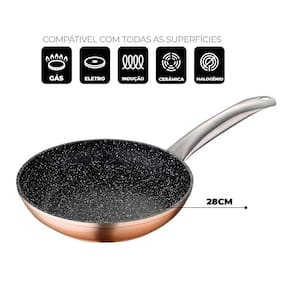 Para cozinhar com máxima eficiência, conte com a panela Wok Dafne Indução! Ela prepara a comida sem grudar, é fácil de higienizar e muito resistente ao uso. A estrutura em alumínio forjado é revestida pelo Marble+, uma camada de mármore antiaderente.O toque final está no cabo em aço inox, perfeito para quem gosta de peças duradouras.Além disso, possui revestimento em Mármore que é uma excelente camada antiaderente com o desempenho endurecido (Marble). Cozinhar fica mais fácil e divertido com as panelas da Bergner.