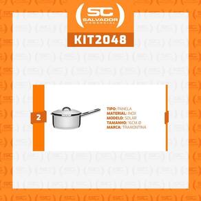 Componentes do kit: 1 un - 63815101 colher para arroz extrata 1 un - 63815091 concha terrina extrata 1 un - 63815221 espumadeira extrata 1 un - 63815391 espátula perfurada extrata 1 un - 63815471 garfo trinchante extrata 2 un - 62501160 panela em aço inox linha solar fundo triplo 16 cm 1,4l pit7 - tramontina