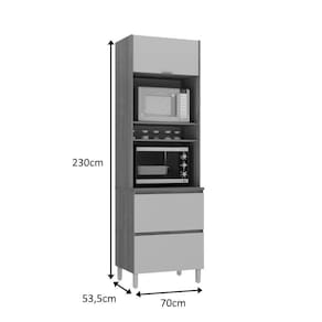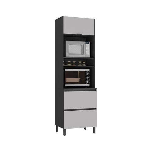 Paneleiro Itatiaia Lumina Nicho para 2 Fornos com 2 portas 1 Gaveta e nicho, corpo em MDF 1,5cm pintado, portas em MDF 1,5cm, caixas em papelão revestidas com plástico termo retrátil, corpo em chapa MDF pintado padrão madeirado e portas em chapa MDF.