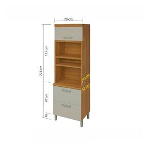 Paneleiro com dois nichos, micro-ondas e forno elétrico, sendo o nicho de forno elétrico com duto de liberação de calor.
