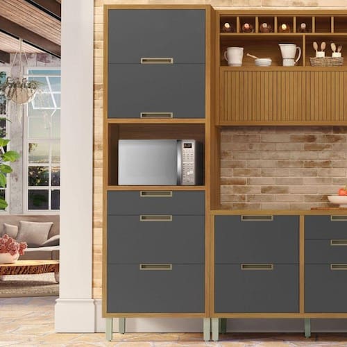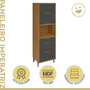 O Paneleiro 2 Portas 3 Gavetas Imperatriz Nesher 100% MDF tem design contemporâneo, robusto e é muito pratico. Inspirado em cozinhas planejadas, foi projetado para proporcionar praticidade e funcionalidade no uso diário, produzido com matérias prima de alto nível e ferragens tecnológicas de última geração. Todo o projeto foi pensado para embelezar sua cozinha com muita praticidade no uso e muita qualidade e durabilidade no dia a dia. Acabamento da Gaveta: Impressão Acabamento da Porta: Impressão Acabamento da Prateleira: Impressão Acabamento dos Pés: Pintura Altura dos Pés: 16 cm Ambiente Principal: Cozinha Complexidade da Montagem: Média: pode ser montado por mais de uma pessoa e/ou necessite de maior conhecimento para montagem Cor: Freijó/Grafite Cor do Produto: Freijó/Grafite Cor dos Pés: Champanhe Cor Flex: Não Cor Interna: Freijó Escala de Brilho: Semi-Brilho Escala de Brilho da Gaveta: Semi-Brilho Escala de Brilho da Porta: Semi-Brilho Escala de Brilho da Prateleira: Semi-Brilho Gaveta com Chave: Não Informações Complementares: O Paneleiro profundo com nicho micro-ondas, possui puxadores de alumínio embutidos na porta. Itens Inclusos: 1 Paneleiro, Manual de Montagem e Kit Ferragens Linha ou Coleção: Imperatriz Manual de Montagem e Instalação: https://cdn2.madeiramadeira.com.br/atributo/nesher-moveis/707416-manual-de-montagem-paneleiro-2-portas-3-gavetas-forno-nesher-imperatriz-70-cm-100-mdf.pdf Material da Gaveta: MDF Material da Porta: MDF Material da Prateleira: MDF Material do Puxador da Gaveta: Alumínio Material do Puxador da Porta: Alumínio Material dos Pés: Polipropileno Montagem Flex: Não Necessita Montagem: Sim Origem do Produto: Nacional Pés Reguláveis: Sim Peso: 70,3 kg Peso Máximo por Gaveta: 5 kg Peso Máximo por Prateleira: 15 kg Possui Espelho: Não Possui Possui Pés: 04 Possui Portas: 02 Possui Prateleiras: 02 Possui Rodízio: Não Recomendações de Uso, Manutenção e Limpeza: Utilizar pano macio levemente umedecido e na seuqncia pano macio seco. Sapatas Niveladoras: Sim Sistema de Montagem: Parafusos, cavilhas e minifix Tipo de Corrediça da Gaveta: Metálica Telescópica Tipo de Dobradiça/Corrediça da Porta: Metálica Tipo de Puxador da Gaveta: Externo Tipo de Puxador da Porta: Externo