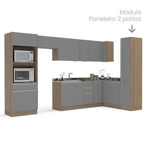 O Paneleiro 2 Portas Campanele, nas medidas de 60 cm de largura, 213 cm de altura e 51 cm de profundidade, é a peça ideal para complementar sua cozinha com praticidade, elegância e organização. Produzido em MDP de alta qualidade com acabamento em pintura UV nas cores amêndoa e cinza, combina resistência, durabilidade e um visual moderno que harmoniza facilmente com diversos estilos de decoração. Com excelente aproveitamento vertical, oferece espaço interno amplo e bem distribuído, perfeito para armazenar panelas, eletroportáteis, utensílios ou mantimentos, mantendo sua cozinha sempre organizada. Além disso, o contraste dos tons amadeirado e cinza confere um toque de sofisticação e personalidade ao ambiente, unindo funcionalidade e estética em um só móvel.