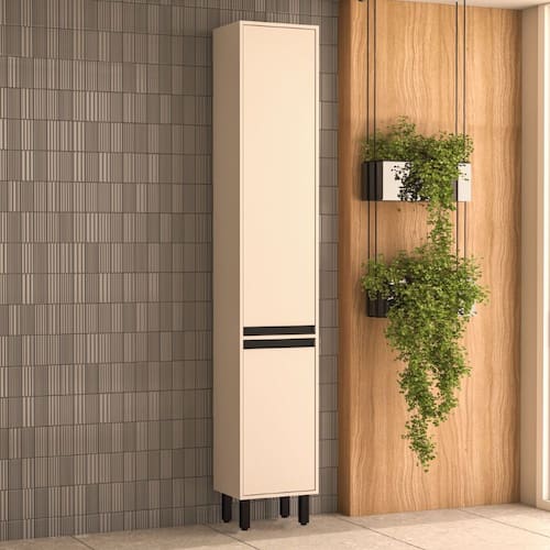 Características: Estrutura MDP Pintura UV 02 Portas com dobradiças metálicas Puxadores de Plástico 04 pés em plástico Possui prateleiras com amplo espaço Peso suportado nas Prateleiras Estruturais: 10kg Peso suportado nas Prateleiras: 5kg
