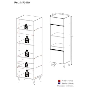 Altura: 203cm | Largura: 62cm | Profundidade: 53cm
