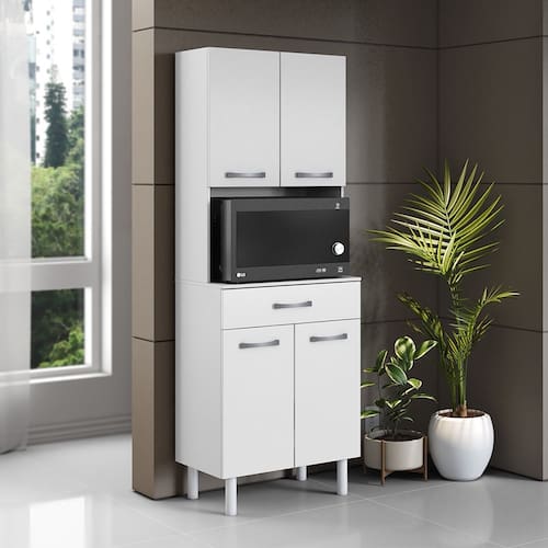 Características: Estrutura em MDP Pintura semi-brilho 04 Portas com dobradiças metálicas 01 Gaveta com corrediças metálicas Espaço para micro-ondas Puxadores de Plástico