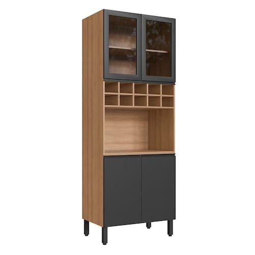 Paneleiro 4 Portas 1 Nicho Para Forno E Adega Quiditá Montana/grafite/vidro
