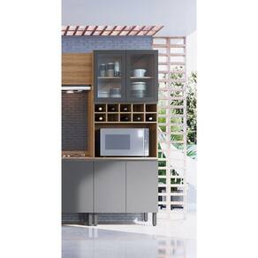 Paneleiro 4 Portas 1 Nicho Para Forno E Adega Quiditá Montana/grafite/vidro - Cinza