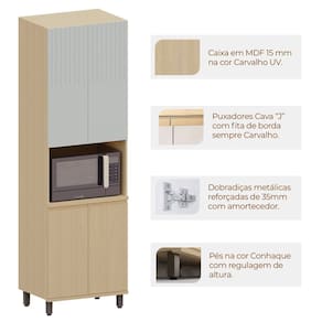 Organize sua cozinha com estilo e praticidade com o Paneleiro Aurora com nicho para micro-ondas! Com 230 cm de altura, esse móvel imponente oferece amplo espaço interno com 4 prateleiras bem distribuídas, ideal para armazenar panelas, utensílios e mantimentos. Sua estrutura em MDP reforçado e portas em MDF de 18 mm garantem resistência e durabilidade, enquanto o acabamento em pintura UV realça a beleza do design moderno. As dobradiças metálicas com amortecimento e os puxadores tipo “J” em MDF proporcionam um toque de sofisticação e funcionalidade. Além disso, os pés com regulagem de altura na elegante cor conhaque completam o visual, tornando o paneleiro a escolha perfeita para cozinhas moduladas.