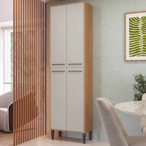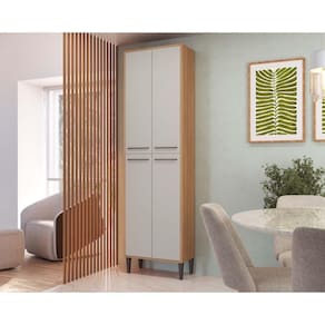 O Paneleiro Jade é o mobiliário perfeito para você armazenar todos os seus utensílios e objetos, ele conta com 4 portas de bater com dobradiças de aço e amortecimento além de um amplo espaço interno com 4 prateleiras super espaçosas e bem divididas. Para finalizar ele é produzido com chapas de MDP, material que deixa a estrutura ainda mais firme, resistente e durável. Cor: Freijo/Arenas