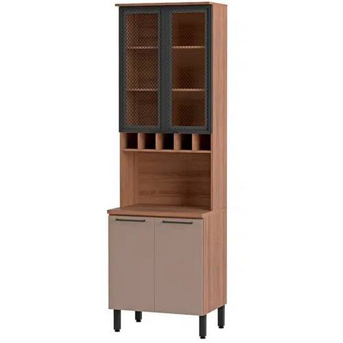 Espaco funcional Ele conta com 4 portas, sendo duas delas de vidro temperado e serigrafado, recheado com 3 prateleiras internas, 5 nichos ideais para garrafas, alem de um tampo com espaco para micro-ondas ou decoracoes! Tudo isso para voce guardar e organizar seus utensilios domesticos.