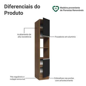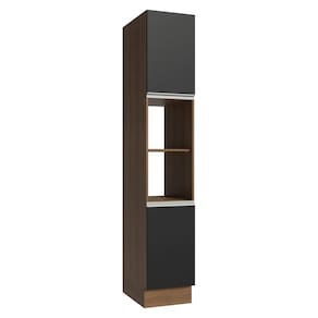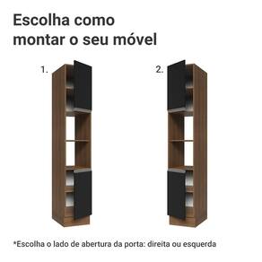 O acabamento da estrutura é no tom amadeirado Rustic e a porta em preto, transmitindo um design marcante e sofisticado. O puxador cinza em perfil de alumínio, no estilo cava, é um dos destaques: moderno, minimalista e muito prático no dia a dia.
