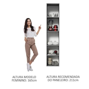 A distribuição interna conta com quatro prateleiras e cinco nichos, ideias para organizar toda a parte de louças, utensílios, eletroportáteis e o que mais você preferir.