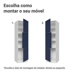 O acabamento fosco de alta resistência da estrutura é em Branco e das portas em Azul, refletindo o estilo americano com um toque moderno. Possui uma textura suave ao toque, trazendo leveza e sofisticação ao ambiente. O destaque vai para os puxadores ponto em ouro envelhecido, feitos com metal resistente, que adicionam personalidade e um charme único.