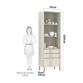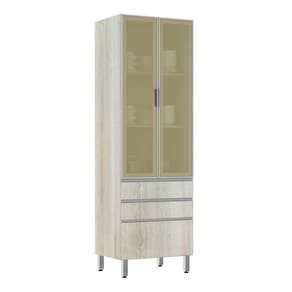 Paneleiro 70cm 2 Portas Vidro Reflecta Bronze 2 Gavetas 1 Gavetão Lis Luciane Móveis - Bege Claro