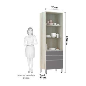 Paneleiro 70cm 2 Portas Vidro Reflecta Bronze 2 Gavetas 1 Gavetão Lis Luciane Móveis - Cinza
