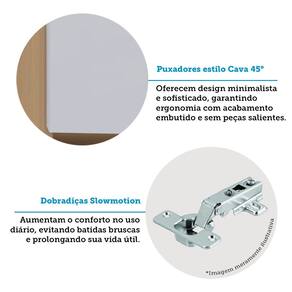 Características Material da Estrutura: MDP 15mm Acabamento: Caixaria Pintura UV e Frontal BP Quantidade e Tipo de Portas: 4 Portas de Bater Quantidade de Gavetas: 1 Quantidade de Prateleiras: 3 Tipo de Dobradiças: Metálicas 35mm Slowmotion Tipo de Puxadores: Cava 45° Tipo de Corrediça: Metálicas Telescópicas Sistema de Montagem: Cavilhas e Parafusos Garantia: 3 meses Informação Complementar: Espaço para forno ou micro-ondas. *As dimensões máximas devem respeitar a margem de respiro com folga de 5cm das laterais do móvel.*