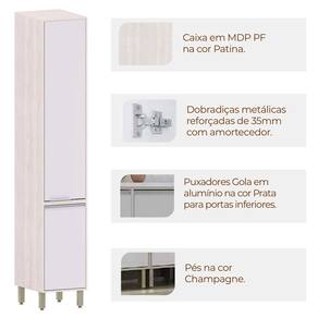 • Pintura: 4 Prateleiras Internas em Patina FF; Dobradiças Metálicas 35 mm com Amortecimento; 2 Puxadores Gola em Alumínio Prata (Anodizado);