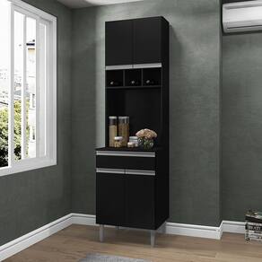 Características: Estrutura MDP Pintura UV 04 Portas com Dobradiças metálicas 01 Gaveta com Corrediças metálicas Nicho garrafeiro Espaço para micro-ondas Pés em PVC