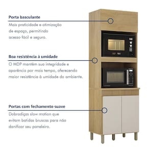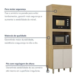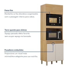 Paneleiro Com 2 Nichos 3 Portas Dakota Valdemoveis Cinamomo/off White Paneleiro com 2 Nichos 3 Portas Dakota Valdemoveis Nosso paneleiro com 2 nichos e o aliado perfeito para quem busca organizacao e elegancia na cozinha. Com espaco ideal para acomodar micro-ondas e forno eletrico, ele mantem seus eletrodomesticos sempre ao alcance, enquanto o detalhe fresado na estrutura adiciona um toque moderno e sofisticado. Compacto, elegante e pratico, ele se adapta a qualquer estilo de decoracao. Transforme sua cozinha com muito charme e praticidade!