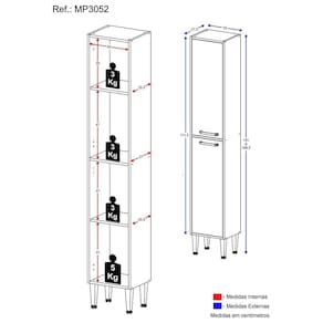 Dimensões do produto montado: Altura: 191 cm / Largura: 33 cm / Profundidade: 27,5 cm *Você pode consultar as medidas internas na imagem técnica do produto.