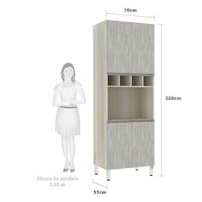 Paneleiro com Nicho de Microondas Luciane 70cm 4 Portas e 1 Nicho Luci - Cinza Claro