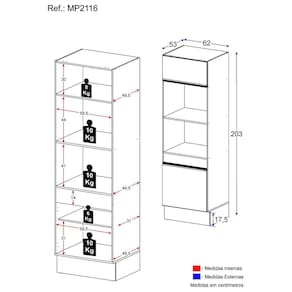 Conteúdo da Embalagem: 1 (um) armário para forno e microondas 62cm 1 (um) kit com rodapés