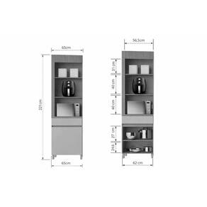 Dimensões(Cm): Paneleiro Cozinha Realeza 1 Porta 1 Gaveta 65cm Comprimento(Profundidade): 45 cm Largura: 65 cm Altura: 221 cm