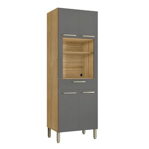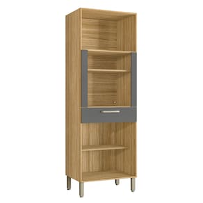 Produzido em MDP de 15 mm., madeira reconstituída provinda de reservas manejadas para este fim, é um produto ecologicamente correto. Nas quatro portas e na ampla gaveta são utilizadas dobradiças 100% metálicas e corrediças telescópicas que garantem facilidade e segurança no abrir e fechar das portas e gavetas. Dispõe de amplo espaço interno para melhor organizar os objetos da cozinha, além de um nicho para microondas e prateleira para pequenos objetos ou decoração acima do microondas. Os puxadores são ergônomicos em plástico resistente. Em sua base utiliza pés reguláveis em plástico resistente que propicia perfeita montagem mesmo em pisos com pequenos desníveis. Um produto que certamente irá ajudar na organização de sua cozinha, aproveitando muito bem os espaços.
