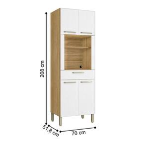 Produzido em MDP de 15 mm., madeira reconstituída provinda de reservas manejadas para este fim, é um produto ecologicamente correto. Nas quatro portas e na ampla gaveta são utilizadas dobradiças 100% metálicas e corrediças telescópicas que garantem facilidade e segurança no abrir e fechar das portas e gavetas. Dispõe de amplo espaço interno para melhor organizar os objetos da cozinha, além de um nicho para microondas e prateleira para pequenos objetos ou decoração acima do microondas. Os puxadores são ergônomicos em plástico resistente. Em sua base utiliza pés reguláveis em plástico resistente que propicia perfeita montagem mesmo em pisos com pequenos desníveis. Um produto que certamente irá ajudar na organização de sua cozinha, aproveitando muito bem os espaços.