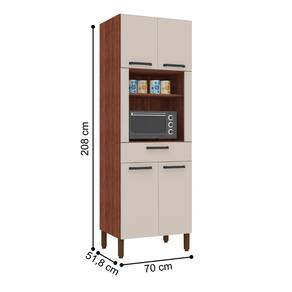 Produzido em MDP de 15 mm., madeira reconstituída provinda de reservas manejadas para este fim, é um produto ecologicamente correto. Nas quatro portas e na ampla gaveta são utilizadas dobradiças 100% metálicas e corrediças telescópicas que garantem facilidade e segurança no abrir e fechar das portas e gavetas. Dispõe de amplo espaço interno para melhor organizar os objetos da cozinha, além de um nicho para microondas e prateleira para pequenos objetos ou decoração acima do microondas. Os puxadores são ergônomicos em plástico resistente. Em sua base utiliza pés reguláveis em plástico resistente que propicia perfeita montagem mesmo em pisos com pequenos desníveis. Um produto que certamente irá ajudar na organização de sua cozinha, aproveitando muito bem os espaços.